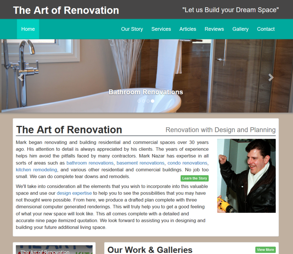 The way it works is we can utilize free WordPress themes or purchase a premium one if you desire. This is the base of your website and from there we customize the home page, add your business pages, photos, etc.